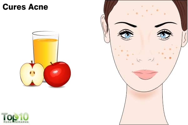 Apple cider vinegar can help you say goodbye to acne. Alpha hydroxy acids in apple cider vinegar help remove dead skin cells clogging the pores. Keeping the skin pores free from bacteria, oil and other particles is the secret behind acne-free skin.