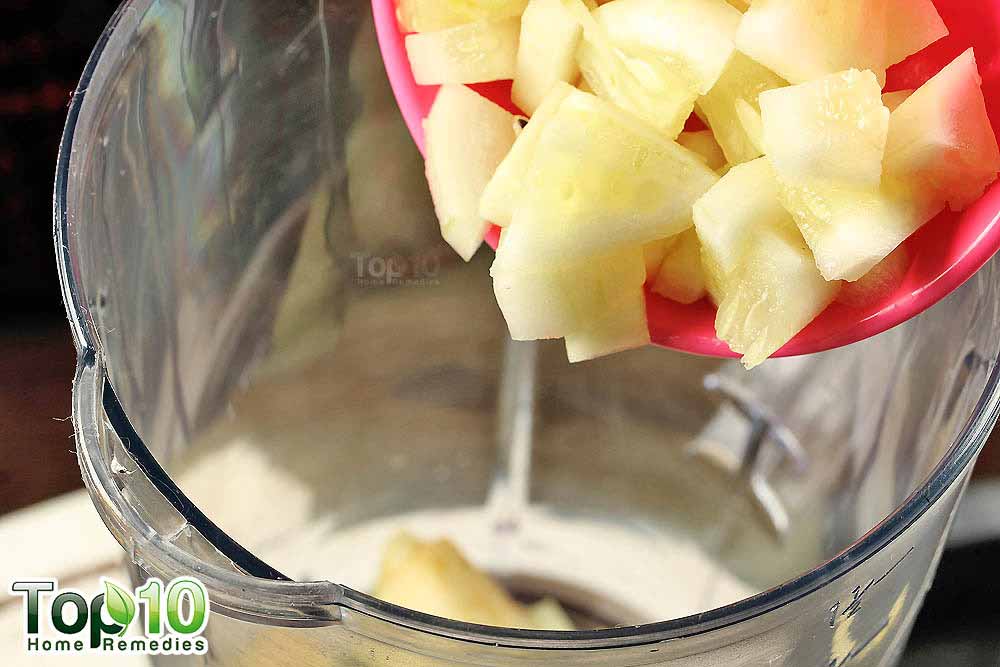 1. Cut ½ green apple into chunks and put the chunks in a blender.