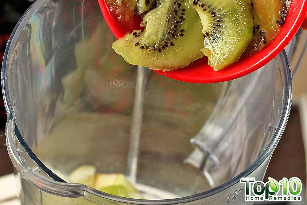 3. Cut 1 kiwi into chunks and add them to the blender.