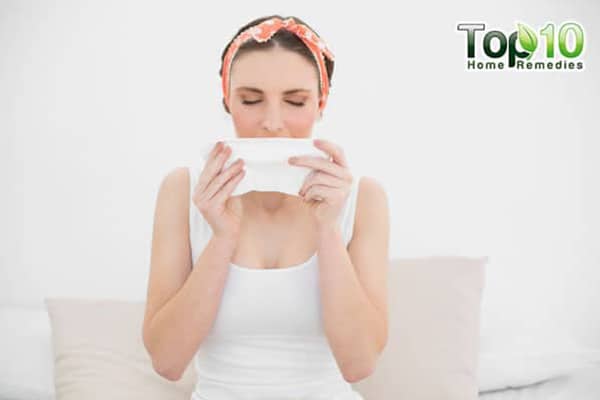 3. Drape a towel over your head and lean carefully over the bowl. Inhale the steam deeply for 5 to 10 minutes.