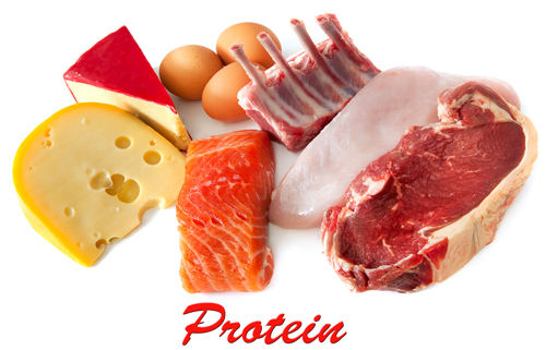 Some high-protein foods are turkey, tuna, shrimp, cod, halibut, salmon, scallops, sardines, chicken, lamb, grass-fed beef, calf’s liver, spinach, tofu, mustard greens, asparagus, soybeans, cheese, mushrooms, eggs, summer squash, split peas and garbanzo beans.
